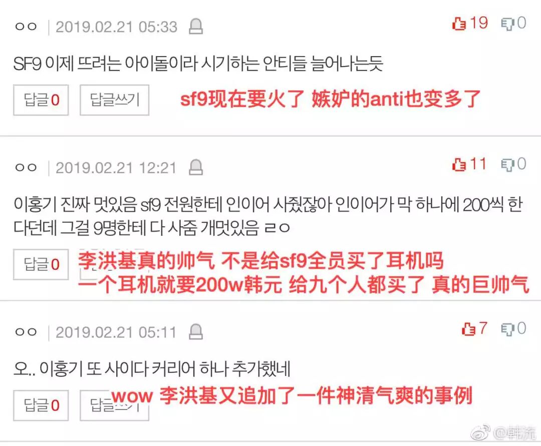要说李洪基对自己的后辈真的是超级好,不光是为了SF9怼那些嘴巴不好的ANTI,还会送大家礼物。