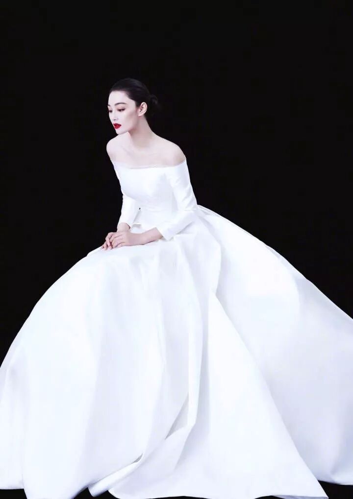 白色的抹胸礼服看起来非常的妖艳,尤其是配上性感的大红唇之后就更加的耀眼,而且裙子的下摆非常的大,非常的有特色