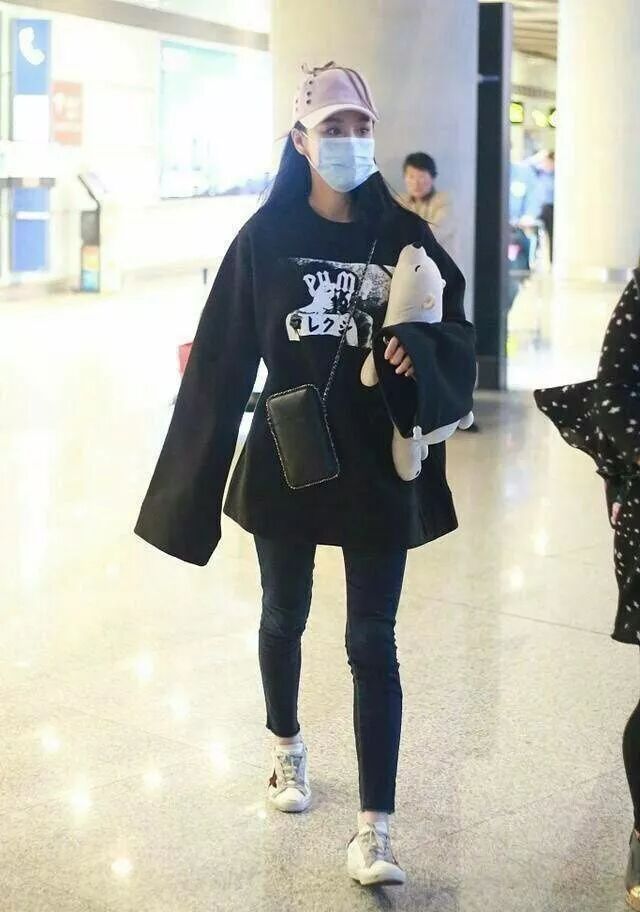 超大款的黑色卫衣会显得整个人特别的可爱,手上的娃娃也是特别的乖巧,这样的造型看起来会觉得特别的舒服,比较运动风