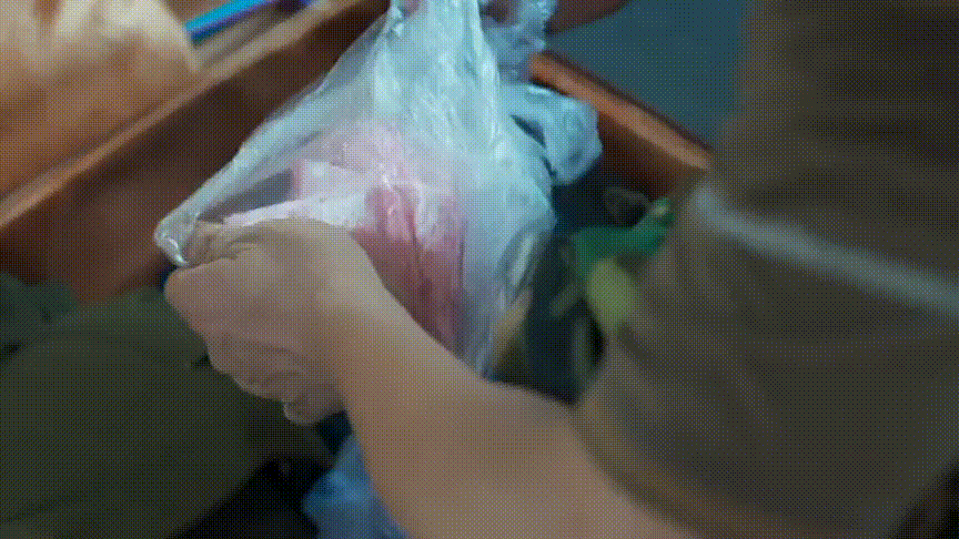 还有农民工焦叔打开行李箱,把自己舍不得扔的卫生巾塞给她。