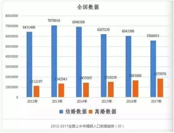 今年上半年,根据民政局官网公布的离婚大数据分析显示,全国新婚558万对夫妇,同时有185万对离婚。
