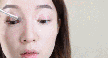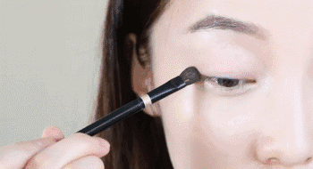 Step6:然后用一个裸棕色涂在双眼皮褶和下眼影位置,自然晕开。