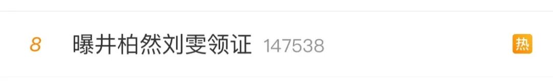 6月9日,网友爆料,井柏然刘雯已经领取结婚证,词条“曝井柏然刘雯领证”冲上微博文娱热搜榜。