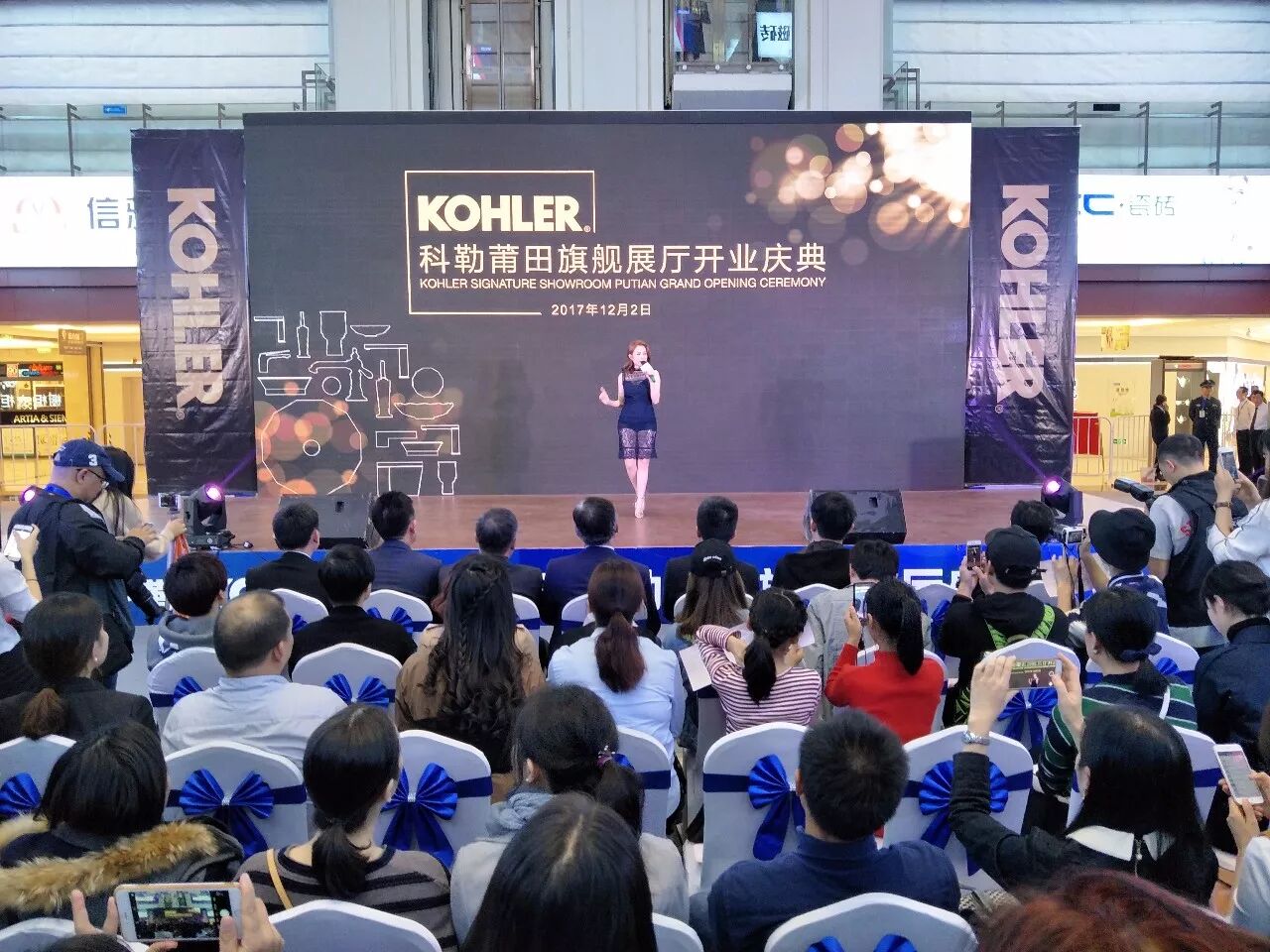 12月2日下午,科勒莆田旗舰店开业庆典在红星美凯龙盛大举行,台湾著名流行女歌手、演员徐怀钰应邀现场助阵,并倾情演唱经典歌曲,掀起阵阵高潮。在接受媒体现场采访时,徐怀钰盛赞:莆田这座城市很现代化,环境也很棒!