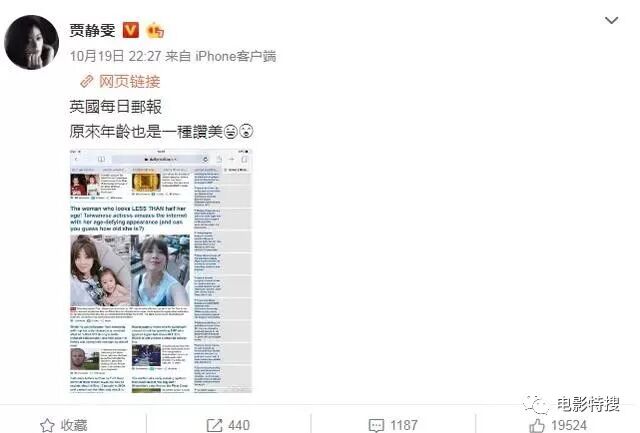 消息是从英国的每日邮报发出来的,随后贾静雯也是大方的转发了此信息,声称原来年龄也是一种赞美。