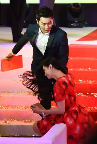 俩人一起出席上海某商业活动,范冰冰下楼梯的时候不慎摔倒,吓得大黑牛急忙去扶。大黑牛此刻的内心活动可能是:“哈哈!宝贝儿摔的好!是时候展现我的男友力了!!”