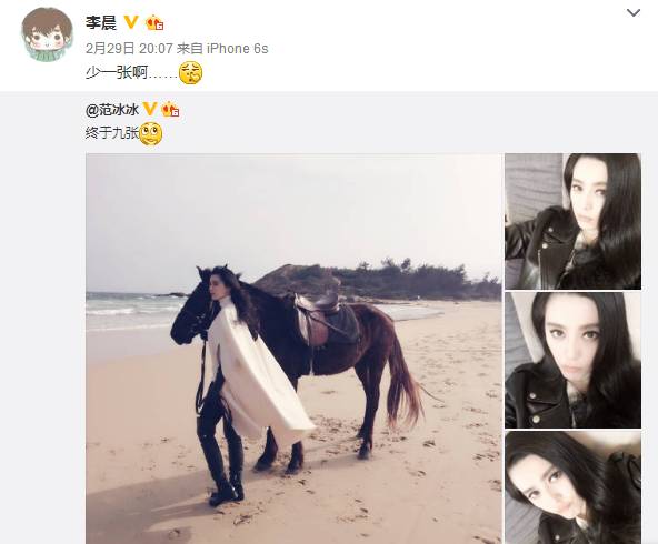 原博范爷其实只po出8张照片。李晨说少一张之后范爷还回复说“只有聪明的人能看到第九张。”