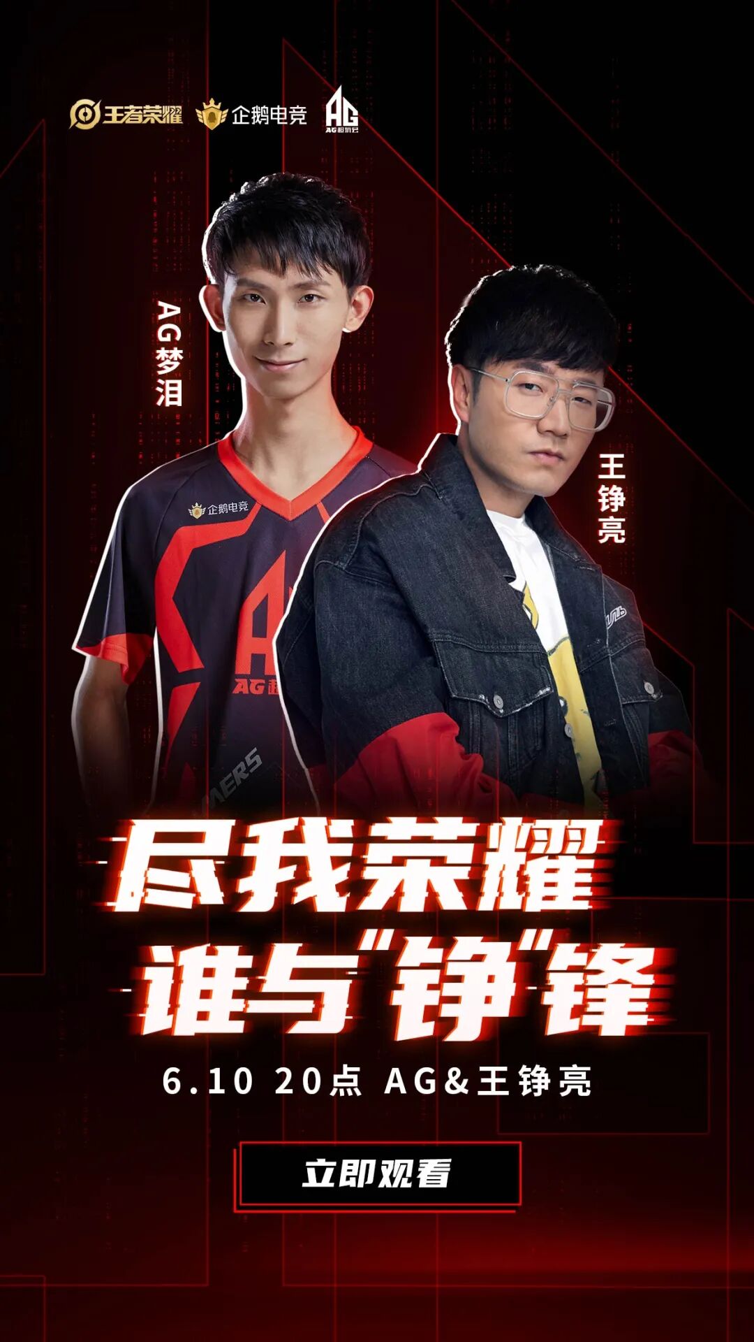 王铮亮就今晚8点要来企鹅电竞啦,活动中他会和和梦泪、梦泪,麟羽,蓝柚,月光五人激情五排!还会在现场回忆多年以来的AG追星史,据他说从2017年到现在每次总决赛几乎都会在KPL现场为家乡队伍加油!对了,王铮亮也是成都人哦。