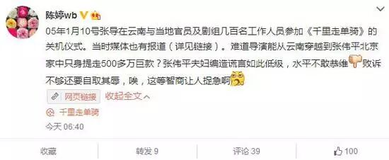 张艺谋老婆陈婷还发微博炮轰:“张伟平败诉不够,还要自取其辱,这等智商让人捉急啊!”