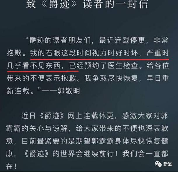 前段时间郭敬明不是发声明说自己右眼视力不佳,不得不暂时停更《爵迹》嘛。