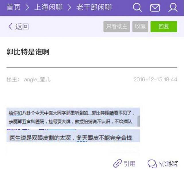 姓郭,比特应该是霍比特(霍比特人特点就是矮)。割过双眼皮,线索很明显,指向的就是郭敬明。