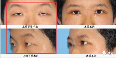 (大家不要看眼睛小,就断定是上眼睑下垂,这个看的是上眼皮遮住黑眼球的面积,左图都遮住了三分之二,就属于重度上眼睑下垂)