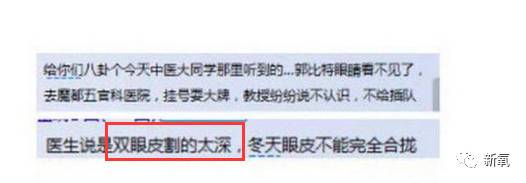 其次,爆尿贴中,说是因为双眼皮割太深。