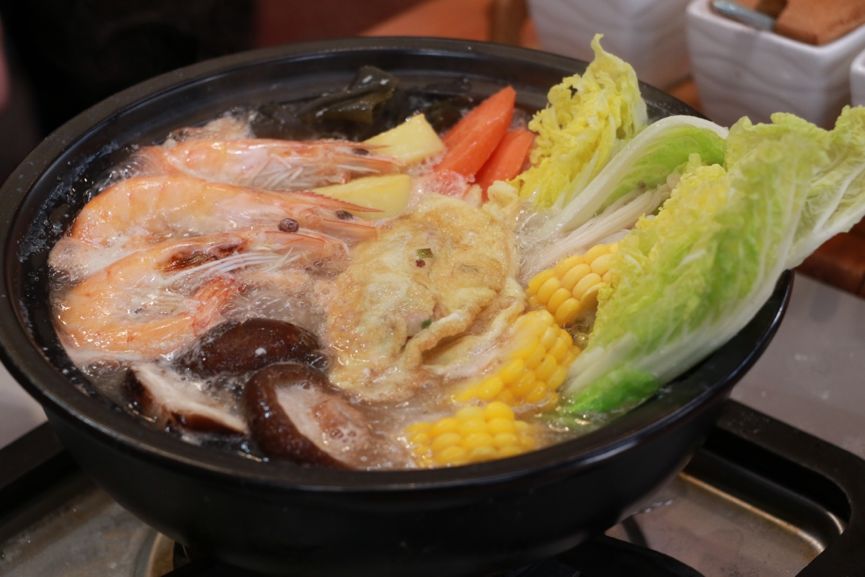 材料:鸡架子猪骨 五花肉 山药 豆浆 马蹄 肉馅 鸡蛋 玉米 胡萝卜 香菇 娃娃菜 魔芋丝 海带 大虾 日本豆腐 小葱 姜 酱油 盐 糖 海盐