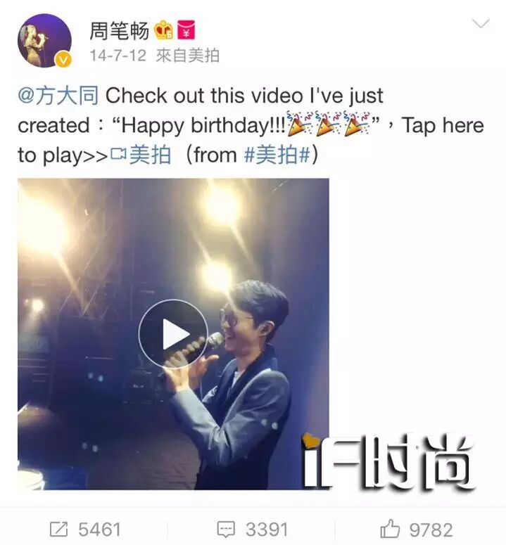▲笔笔也会第一时间为方大同送上生日祝福。