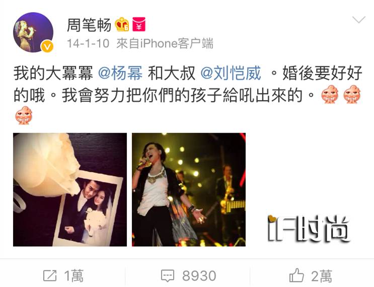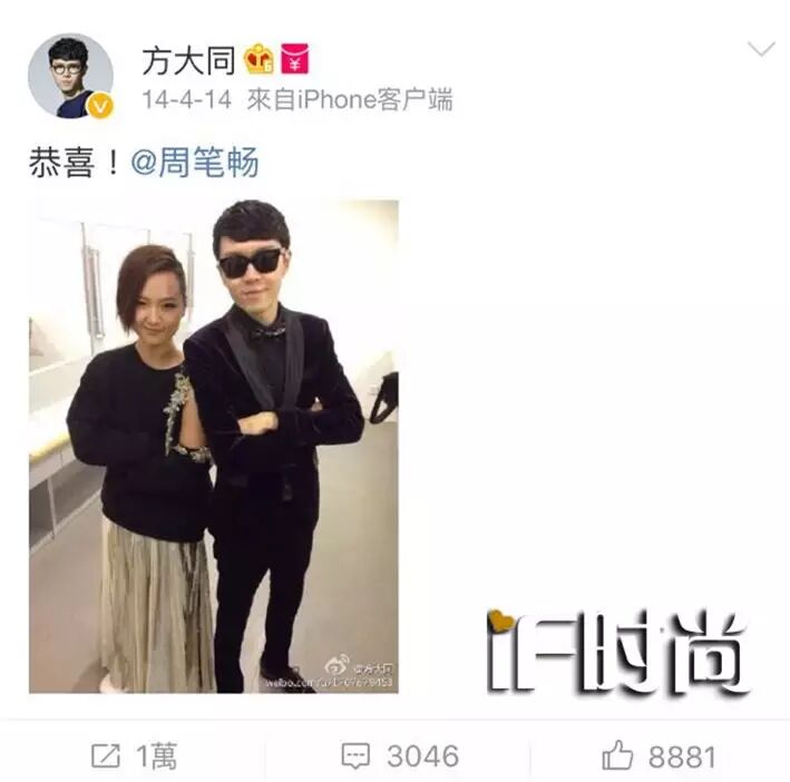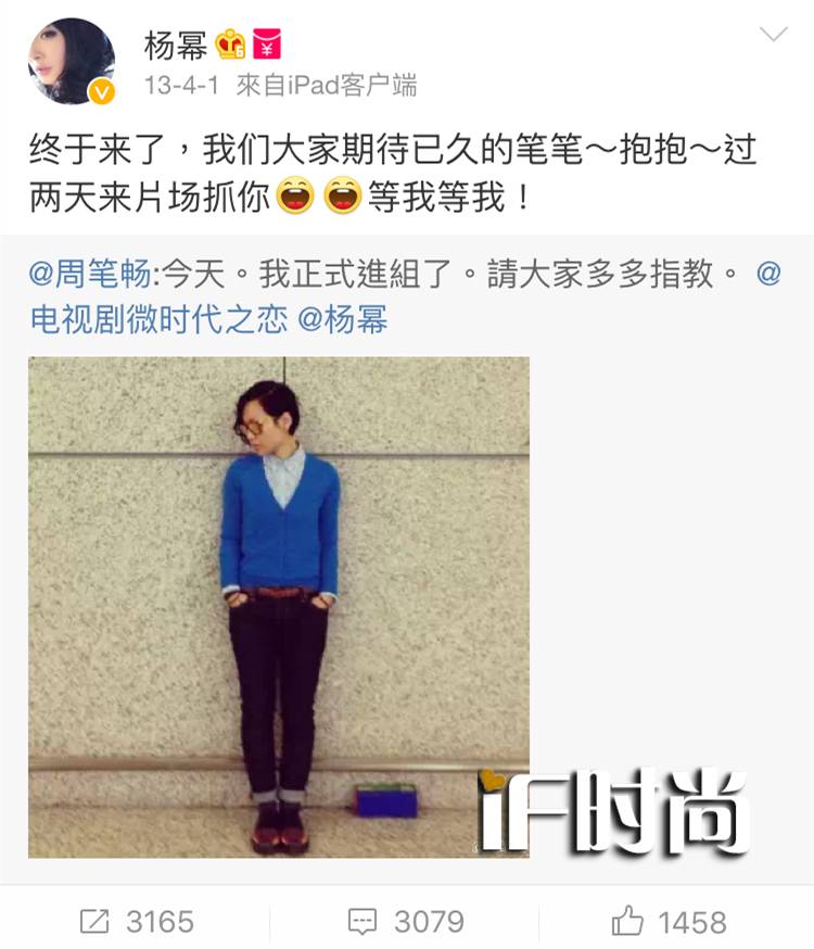 ▲据说大幂幂很早以前就是笔迷,05年还发短信给周笔畅投票,后来通过戚薇介绍认识了周笔畅本尊。。。