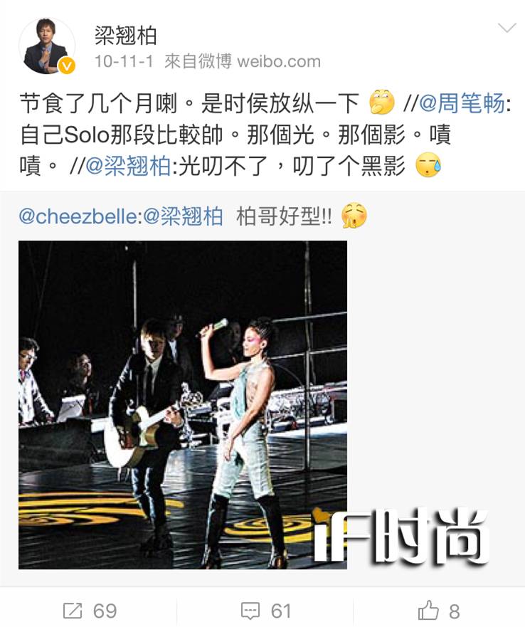 ▲两人私下里也是交流频频,参加完《我是歌手》的笔笔更是不忘调侃梁老师。