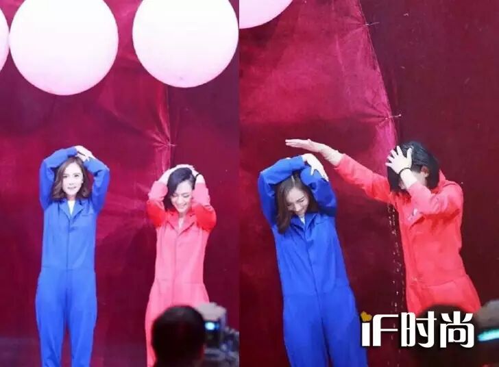 ▲这可真是一对经得起互黑的“亲生的朋友”,上某期快本节目时,周笔畅和杨幂做游戏要受惩罚,先是笔笔被水球砸,然后她的第一反应是伸手替大幂幂挡水,简直太有爱了,IF姐也想要笔笔这样的朋友!