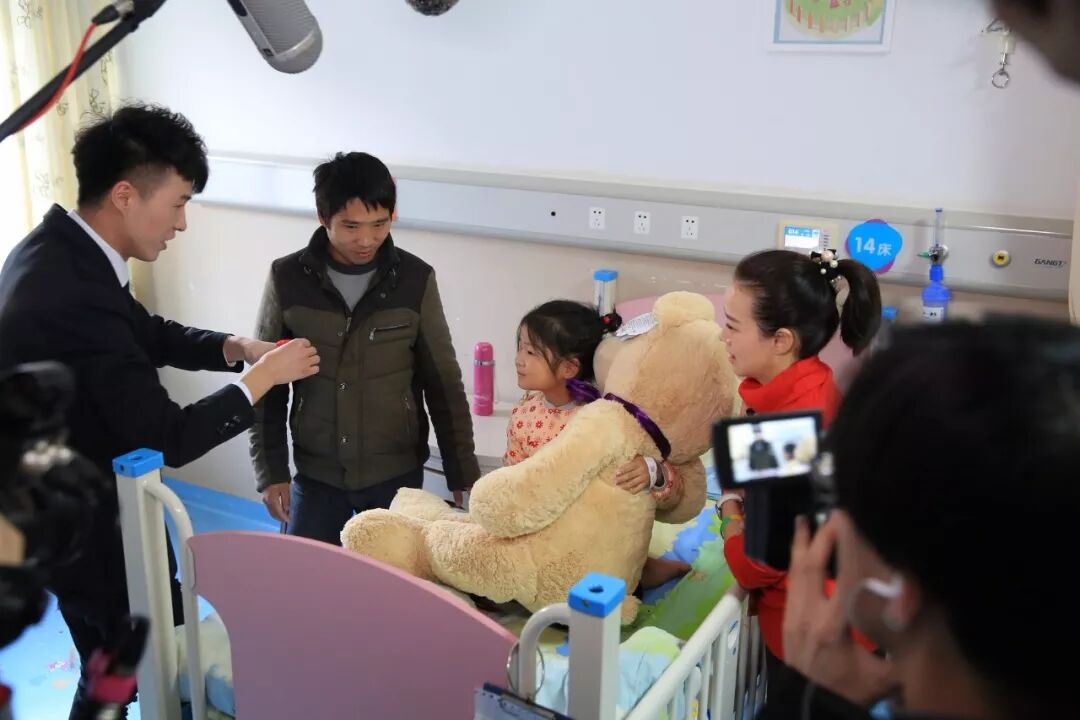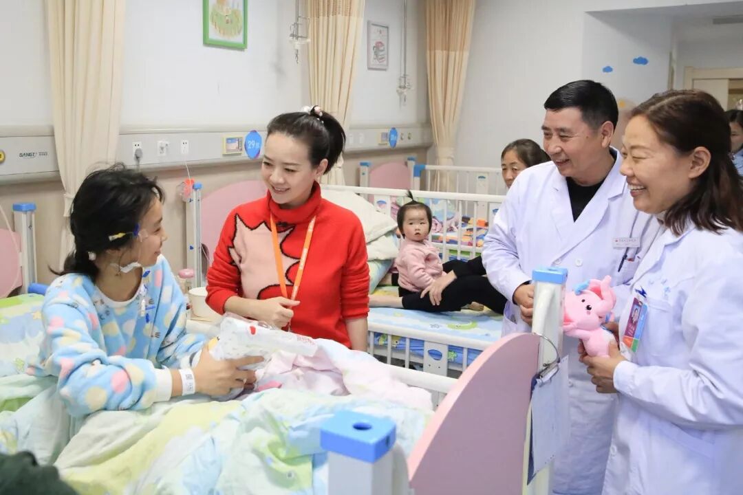 工会主席王玉英、胸心外科主任翟波与宝仪一起,给住院患儿送去医院吉祥物康康乐乐,祝福住院小朋友们健康快乐成长。