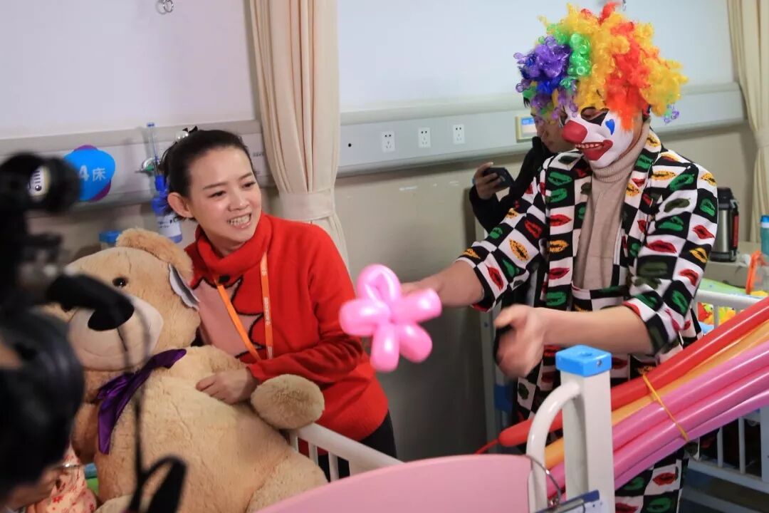 “过年,最重要的是分享,把快乐分享给大家!”魔术哥哥和小丑朋友来到其他病房,给住院的小朋友带去欢乐。