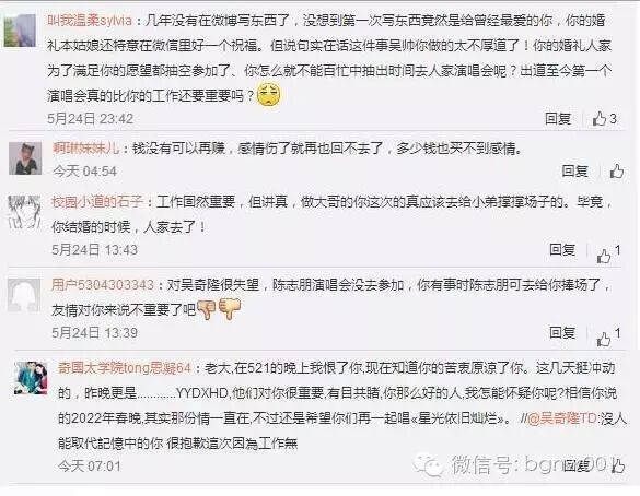 最近吴奇隆更是缺席了好兄弟陈志朋的演唱会。