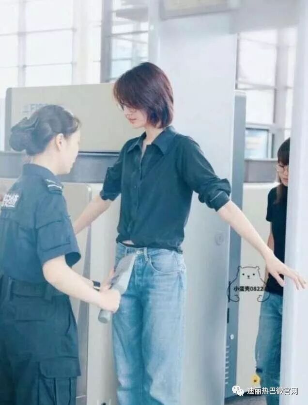 迪丽热巴还是积极配合安检员,毫无明星的架子!