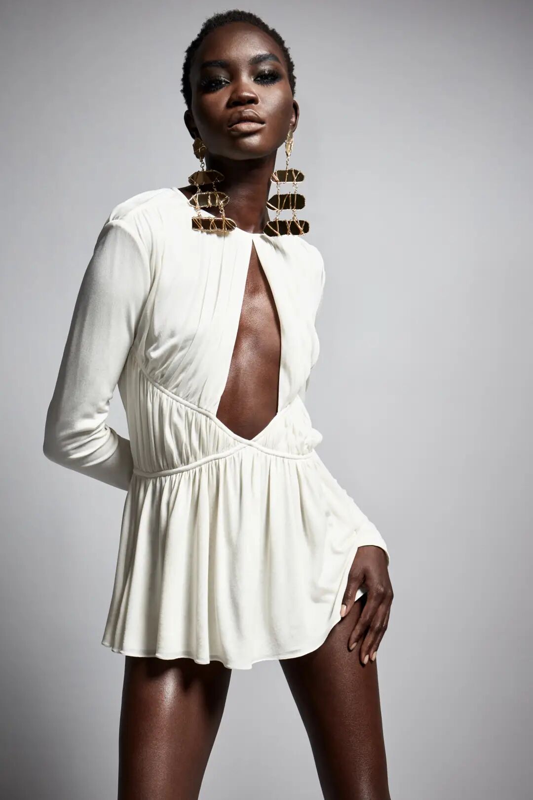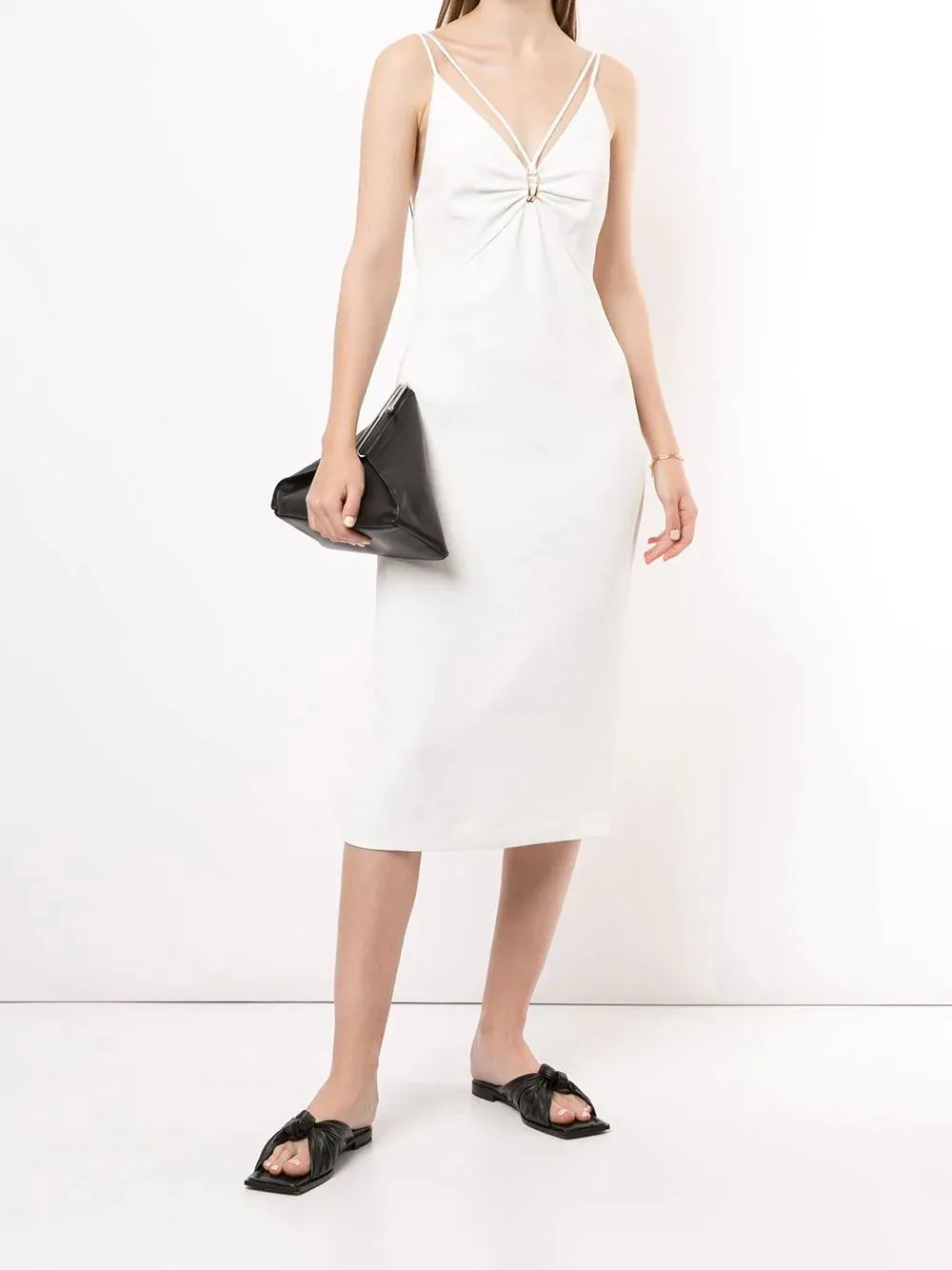 集合了V领、收腰等修身功效的小白裙实在是不可错过的常青款。