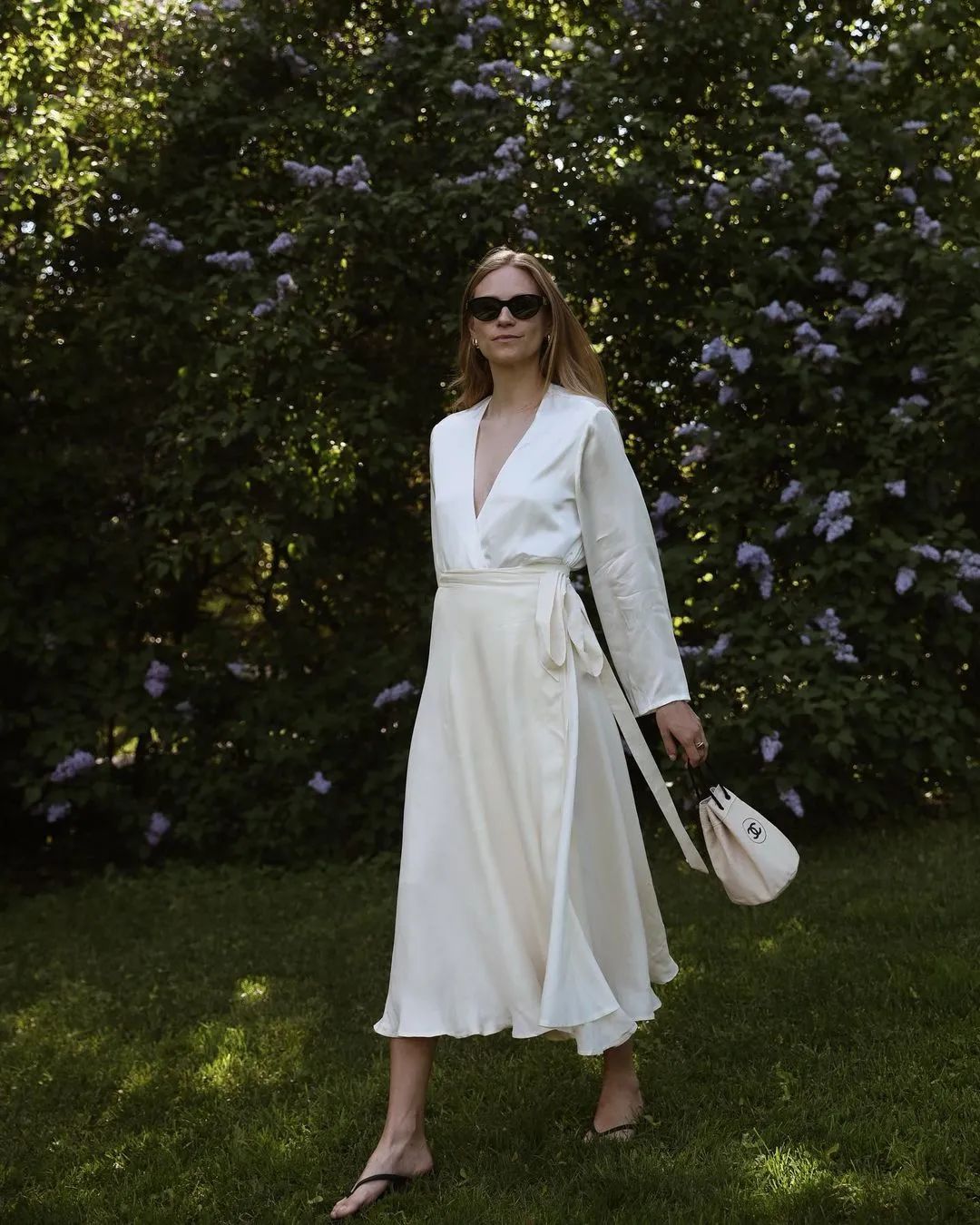 平时的你是不是都穿碎花裹身裙?试试清爽干净的白色裹身裙吧,会有完全不同的惊喜感受。