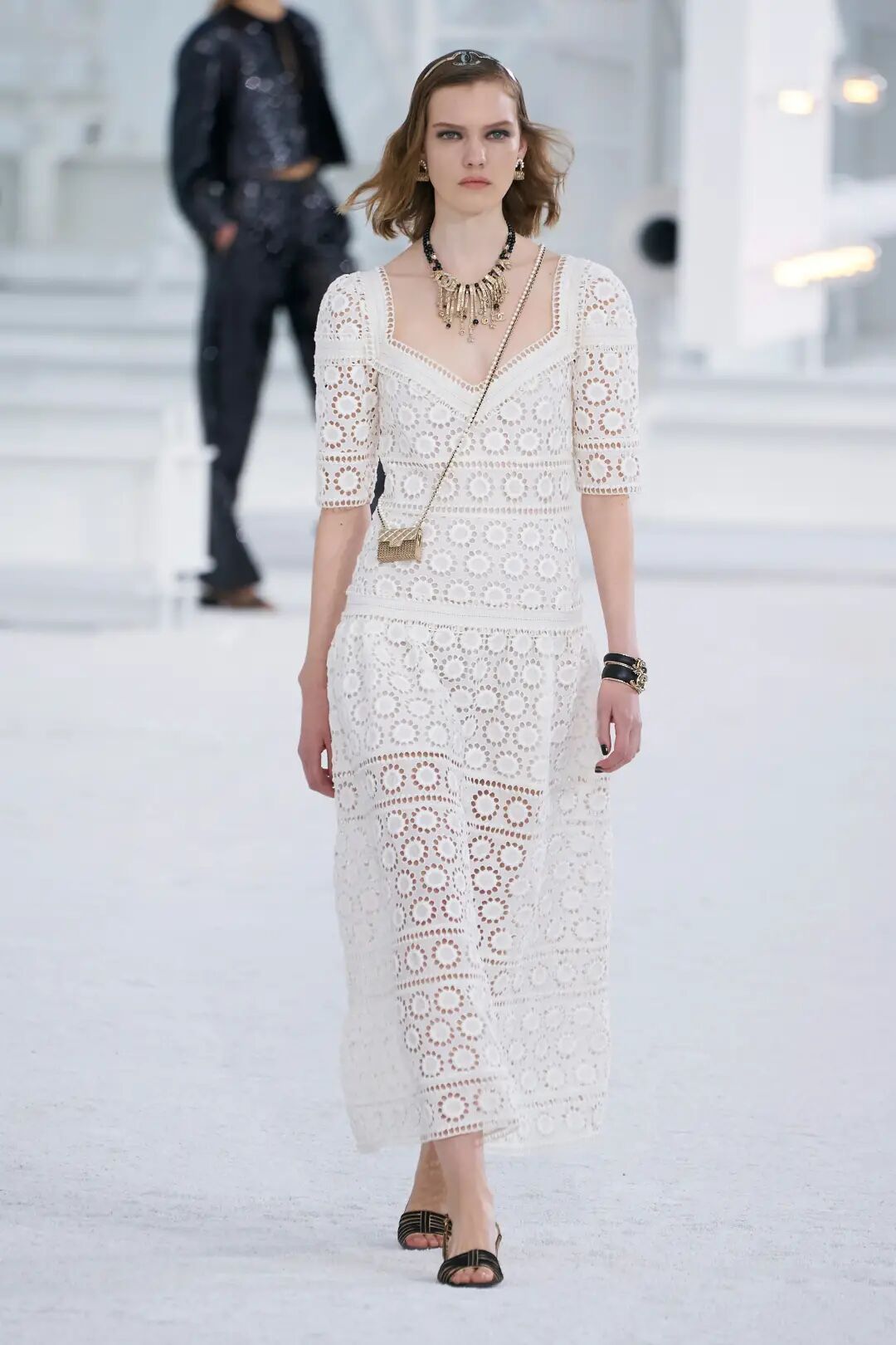 后疫情时代大家似乎更愿意表现心中的浪漫与情感了,今年就有很多大面积蕾丝镂空的款式出现在秀场上。