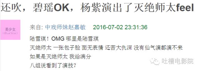 还有之前说过的杨紫,在《诛仙》里饰演陆雪琪,被很多人吐槽把“亮丽清艳”的高冷美人儿演成了灭绝师太……