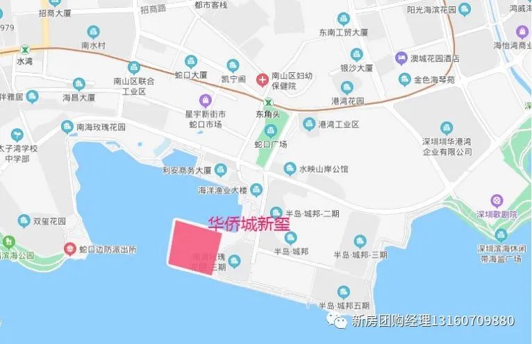 华侨城新玺位于南山区蛇口街道湾厦路最南端,距2号线东角头站约900米,南、西、北三面临海。