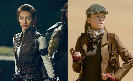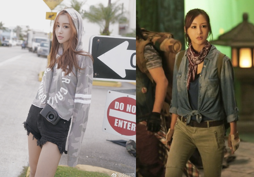 李冰冰,同样在《谜巢》cos过劳拉的造型,身材紧实有料;