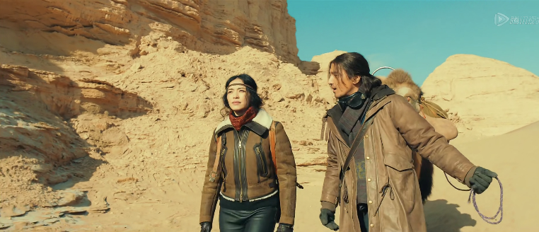 尤其是陈乔恩,《精绝古城》有很多沙漠戏,沙漠早晚温差大,还不时伴有沙暴气候,因此像用来防风保暖的夹克、防沙的围巾眼镜都是必不可少的。