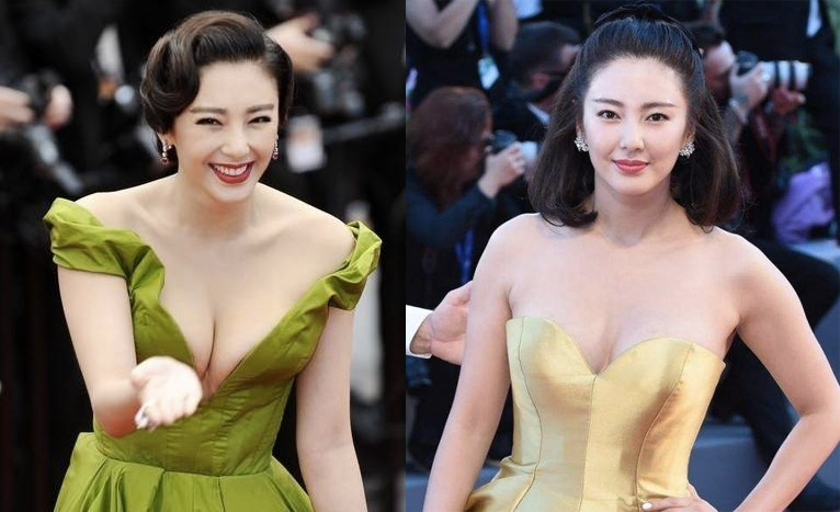 张雨绮是几位女明星中身形最厚的,体脂率比较高,适合穿大开口的礼服走性感路线。