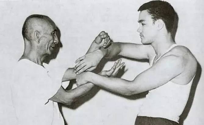 叶问老先生是广东佛山人,40年代后期因战争迁来香港,并开设拳馆专门教授咏春拳,是近代香港武坛德艺俱精且令人敬仰的一代武学名师,是香港武术界的领袖人物,更是咏春拳得以走向世界的首位功臣,因他于1949年开班授徒之前,咏春拳基本上是一种家庭式的教学方式,各位咏春高手只是将拳艺传于自己的子侄甚至族人,像如此大规模授艺,在咏春拳二百多年的历史上尚属首次。李小龙则是在街战失利及受好友张卓庆的影响而决定投入到咏春门下的。因为李小龙突然间感觉到张卓庆的技击犀利了许多,原因是他开始学习了咏春拳的缘故,所以在张卓庆的介绍下他亦正式拜入了叶问宗师的门下,而开始系统学习咏春拳。当然开明的叶问亦不反对李小龙继续练习太极拳,也不反对自己的弟子与别的拳派过招,相反他还特别注重实战训练,因为他知道一个拳派要想生存下去靠的就是自己的实力,习武者只有在“讲手”或“实战”中,才能不断地完善与强大自己。这一切,均对李小龙影响至深。