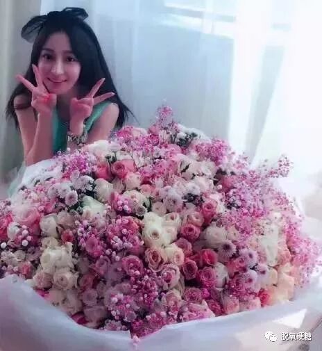 照片中,姚笛手捧一大束鲜花,当天的状态很不错,面色红润,散着长发,对着镜头比v,从照片来看,后边还有卡通主题的气球,看来应该是举办了一个生日party。
