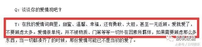 姚笛其实是一个爱情至上的女孩子,她早前接受过采访谈自己的爱情观时就表示,在自己的爱情词典里,甜蜜、温馨、幸福,还有勇敢、大胆,甚至一无返顾。