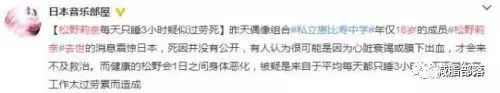 日本的女子组合成员松野莉奈(18岁),因过度疲劳导致心脏问题猝死。
