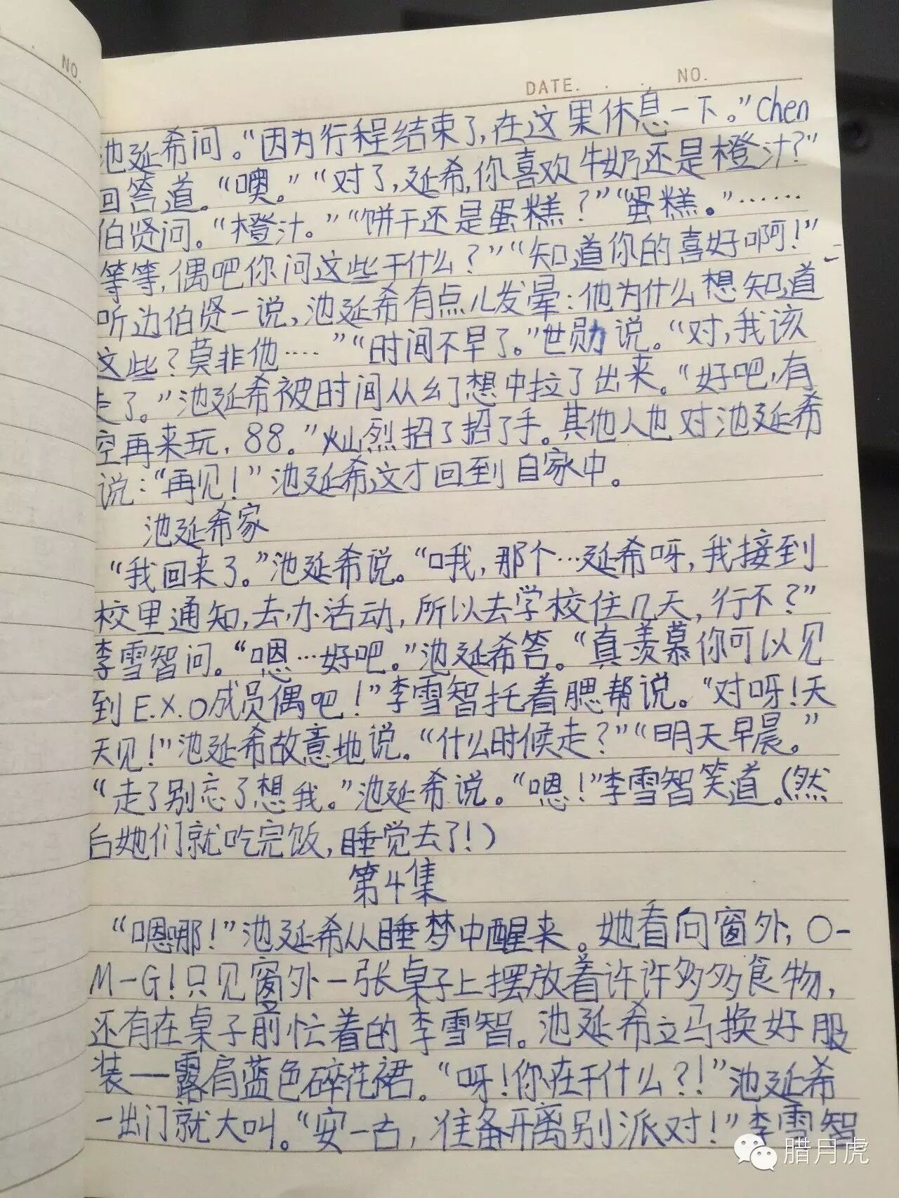 “延希呀,听说EXO搬家了哦,网上闹得真是….乱!”李雪智双眼盯着手机说。“让我看看…”