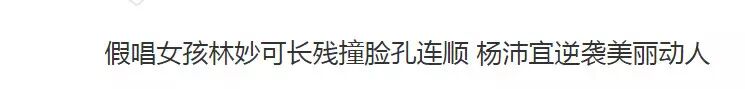 这种骂直到现在也没有消失,最典型的例子就是在林妙可登上热搜之后,当年那个被“隐藏”起来的杨沛宜也被营销号发了出来。而观察两个人新闻的标题不难看出,比起唱衰林妙可,杨沛宜的“逆袭女神”也同样是网友喜闻乐见的。