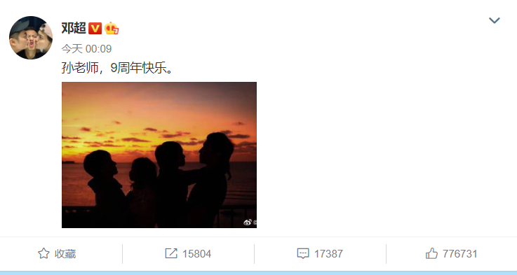 看到邓超发了结婚九周年的微博。