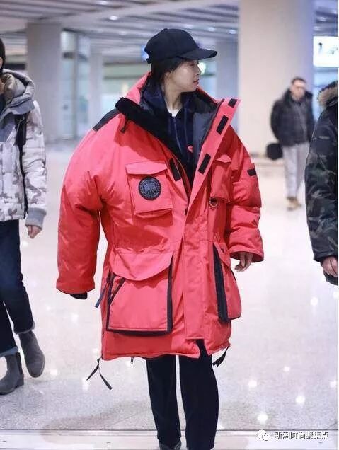 还有这种超大的双面迷彩羽绒服,总之就是不选尺码合自己身材的衣服穿···