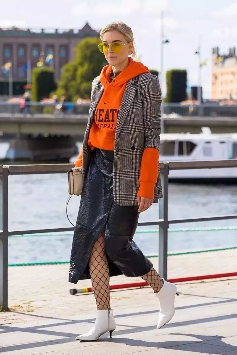 卫衣无论是搭配大衣,裙子还是牛仔裤