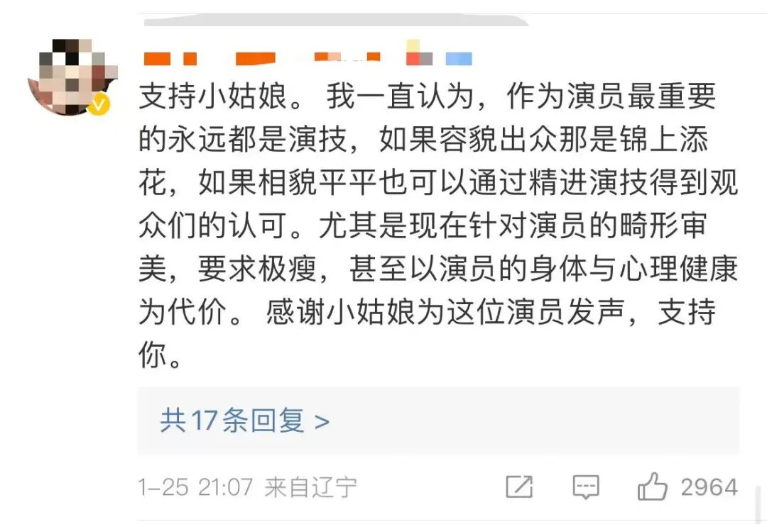 让一位一米七的演员瘦到85斤,多少还是有些苛刻了。因此很多网友对于徐娇的开怼表示了支持。