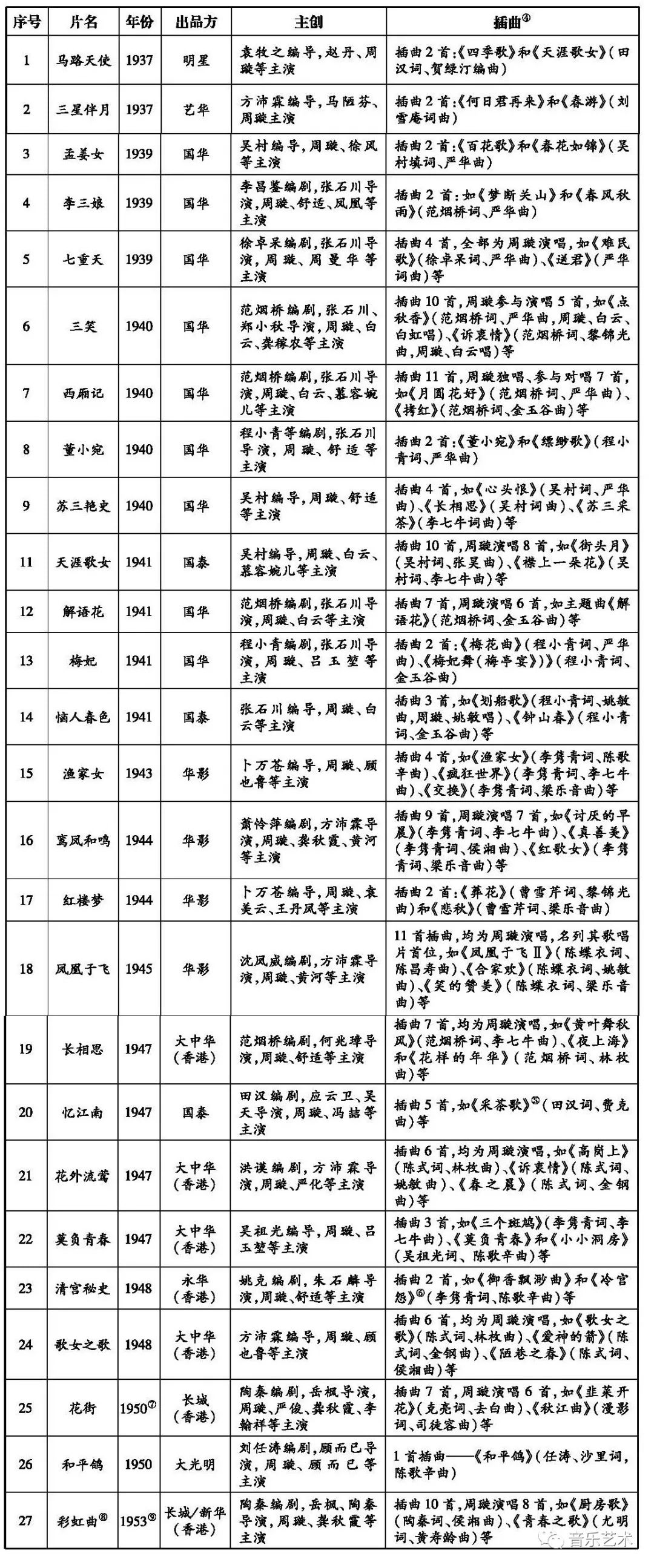 其它文章(详见拙文《周璇的历史崛起——为周璇逝世六十周年而写》,载《歌唱艺术》,2017年第10期,第14~17页)中论及,此处不再赘述。