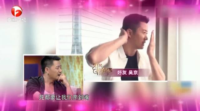 有的时候还gay里gay气的,比如和同样以硬汉形象示人的吴京互称死鬼神马的,还在人家婚礼上和新郎上演男男之吻↓