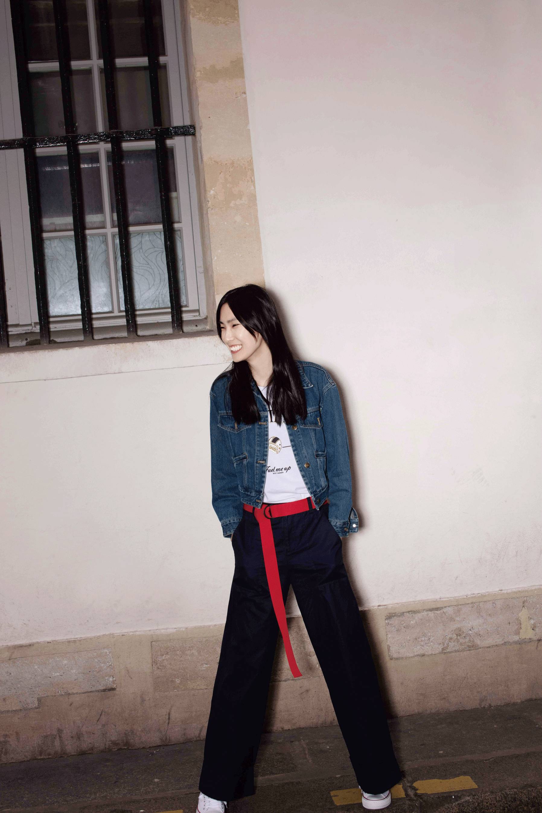 私下如率性boy girl般喜欢简约舒适打扮的Dylan,准备出门干脆在白Tee外加上一件牛仔外套,换上硬棉料子的有型阔腿裤照样走路生风,将复古与随性演绎得真切自然。