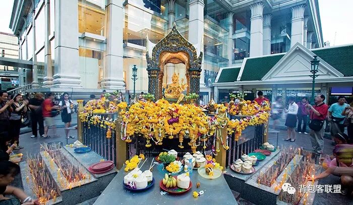 曼谷Erawan饭店旁,供奉着泰国最着名的神龛~四面佛,也就是婆罗门神像大梵天王,传说衪非常的灵验会赐福给信衪的人,因此来许愿和还愿的信徒络绎不绝。不仅有来自全国各地的信众,甚至更有人自海外千里迢迢而来。