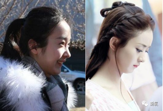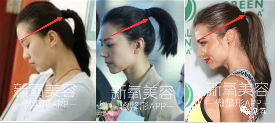 例如赵丽颖,早期还没故意掩饰这个问题的时候更明显,扎头发后脑勺非常的平、耳朵到后脑勺的距离短。