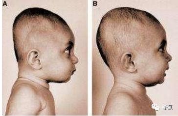 这会儿严重的已经产生了五官的前后落差。就像下图右侧的宝宝,左脸低于右脸、所有的眶骨、鼻基底、嘴角、下颌骨全部都低于右边。